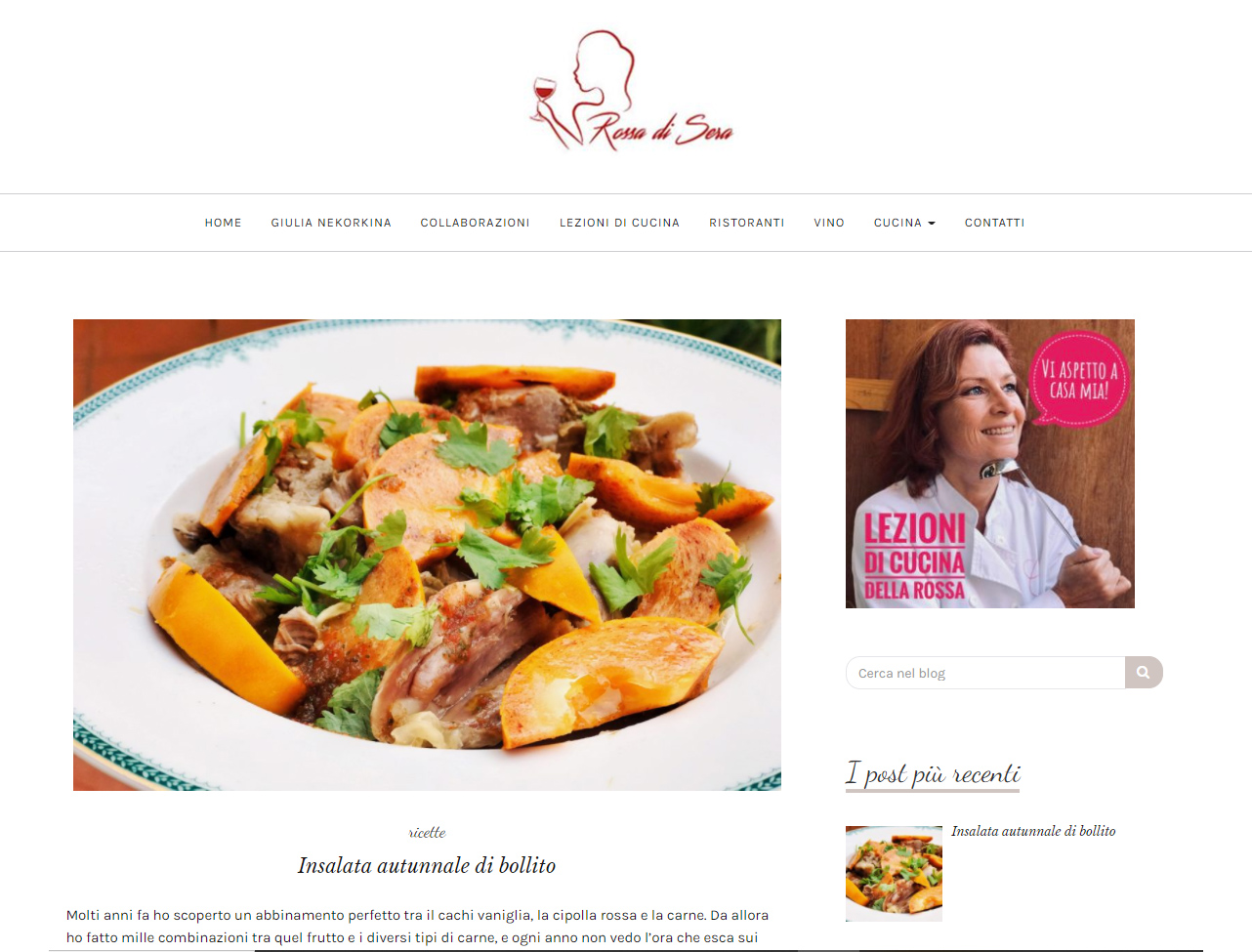Proprio n 2008 Giulia ha dato vita al suo blog “Rossa di sera” cavalcando l’ondata dei blog, uno spazio web dedicato alla cucina, al vino e ai viaggi, ma non si è fermata qui. Ha ampliato il suo spettro d’azione come personal chef facendosi conoscere velocemente anche in Italia. Pochi anni dopo ha iniziato a pubblicare i libri di cucina per una casa editrice italiana.