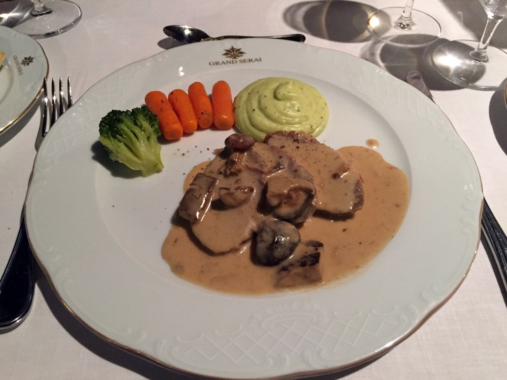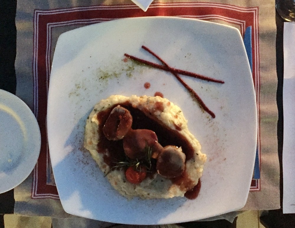 Anche il bere è stato tutto declinato da vini epiroti. Apertura con un vino bianco, il Withe Dot (da vitigni Moshofilero 80% e Roditis 20%), molto fresco, gusto persistente, delicatamente profumato, poi un rosso, il Mountain Fish (vitigno Agiorgitiko in purezza), intenso, al naso sentori di ciliegia e in bocca spiccatamente fruttato gusto persistente e aromatico. Tutti vini della Syn+ winery nel villaggio di Asprokampos, che fa parte della nota Katogi Averoff winery del Metsovo, fondata da Evangelos Averoff e fin dagli anni 50 legata alla tradizione vitivinicola e alle uve di questa terra.