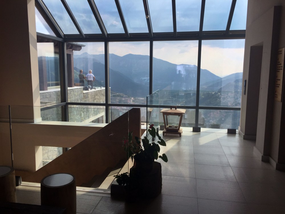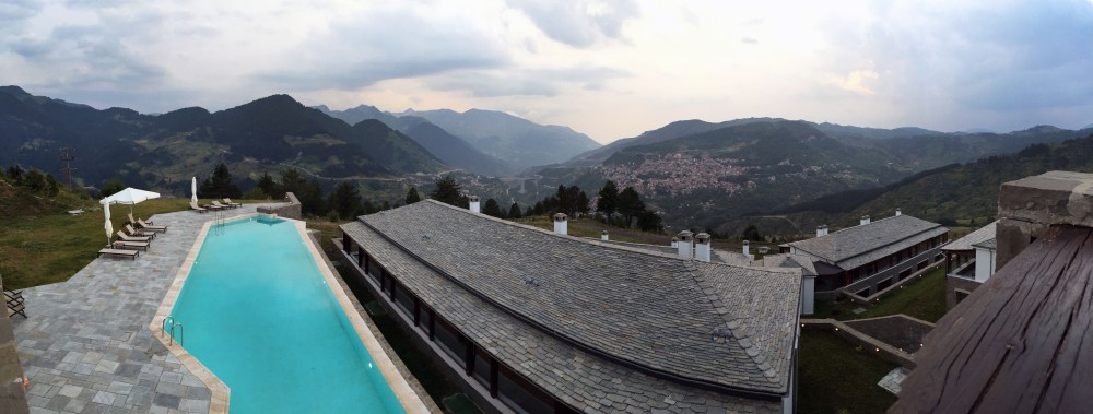 Cambio improvviso di scenario e di fascinazione cenando tra altissime montagne, momento magico nell’area di Metsovo ai tavoli del ristorante “1350 m” su una grande terrazza panoramica del cinque stelle Hotel Grand Forest, struttura in simbiosi con il declivio di una montagna e il sistema montuoso del Pindo, in unione con la foresta e le rocce intorno. Piscine, una slanciata e panoramicissima (sembra di stare tra acqua e cielo). Poi la Spa, stanze a grandi vetrate, un grande piano aperto con tavoli e vista su alti rilievi e verso le valli. Una struttura grande, ma non invasiva, mimetizzata grazie ai colori tipici del legno e delle rocce locali, sviluppata orizzontalmente, quasi adagiata tra massi e ripiani.