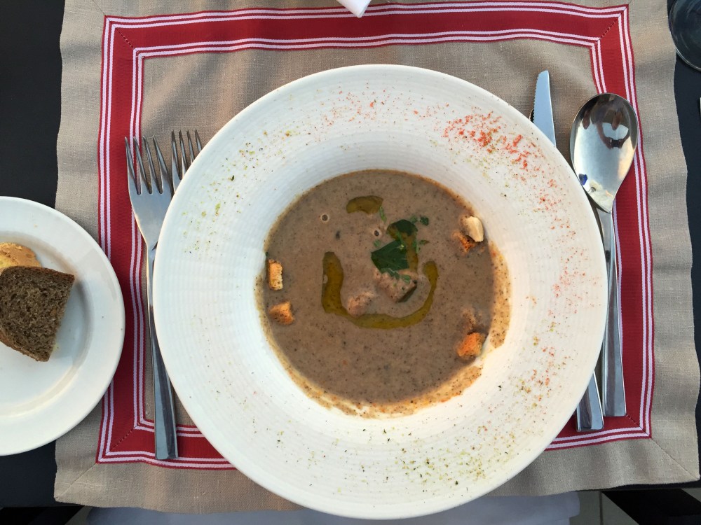 Al tavolo una sequenza infinita di piatti gustosi e raffinati, una full immersion greco-epirota. Affascinati gli occhi e lo spirito con lo spettacolo circostante, anche il palato ha avuto il suo momento di grande godimento. La cena-tipo: zuppa di funghi selvatici con crostini e olio aromatico, varietà di insalata con rucola, funghi freschi, formaggio di capra ai ferri, noci e melagrana; a seguire un saporito arrosto di maiale farcito con il Metsovone, celebre e apprezzato formaggio affumicato di zona, infine un cheescake con lamponi.