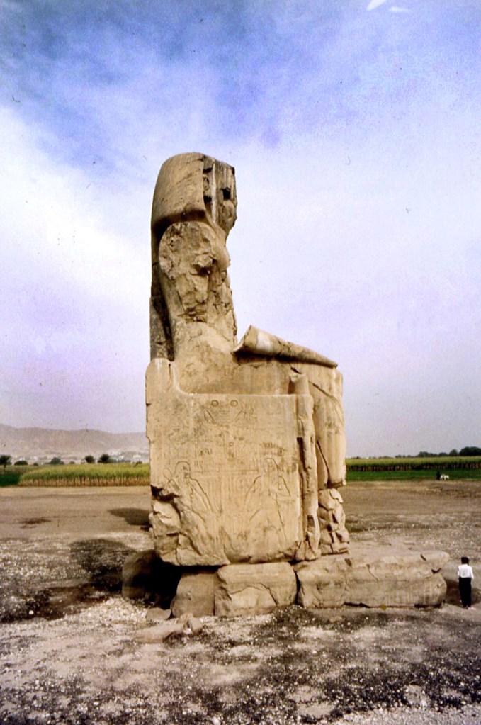 - i due Colossi di Memnone (quelli che “cantavano” ogni mattina allo spuntar del sole per il cambio di temperatura nella pietra, almeno fino a un maldestro tentativo di restauro d’epoca romana);