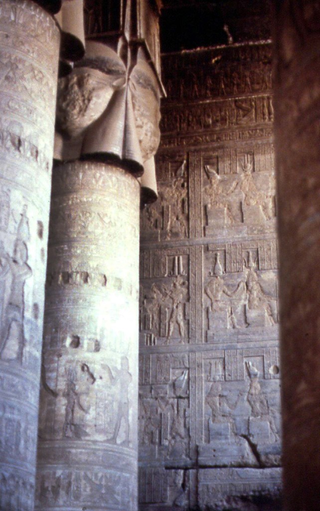 In un balzo si vola a Luxor e lì I due fantastici templi, connessi in origine da viali di sfingi e criosfingi, dedicati alla triade divina di Amon, re degli dei, la dea Mut sua moglie e il figlio, il dio Khonsu (qui in basso immagini da un mio viaggio del 1983).
