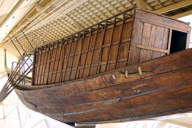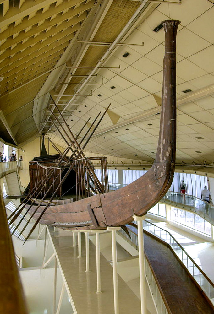 L’imbarcazione, 45 metri di lunghezza per 6 di larghezza, è la più antica che si conosca. Dal 1982 è stata montata ed esposta a fianco della piramide, in un museo ideato dall’architetto italiano Franco Minissi: su modello delle imbarcazioni egizie dell’epoca, questa doveva portare lo spirito del faraone nel suo viaggio ultraterreno che avrebbe seguito il percorso del sole.