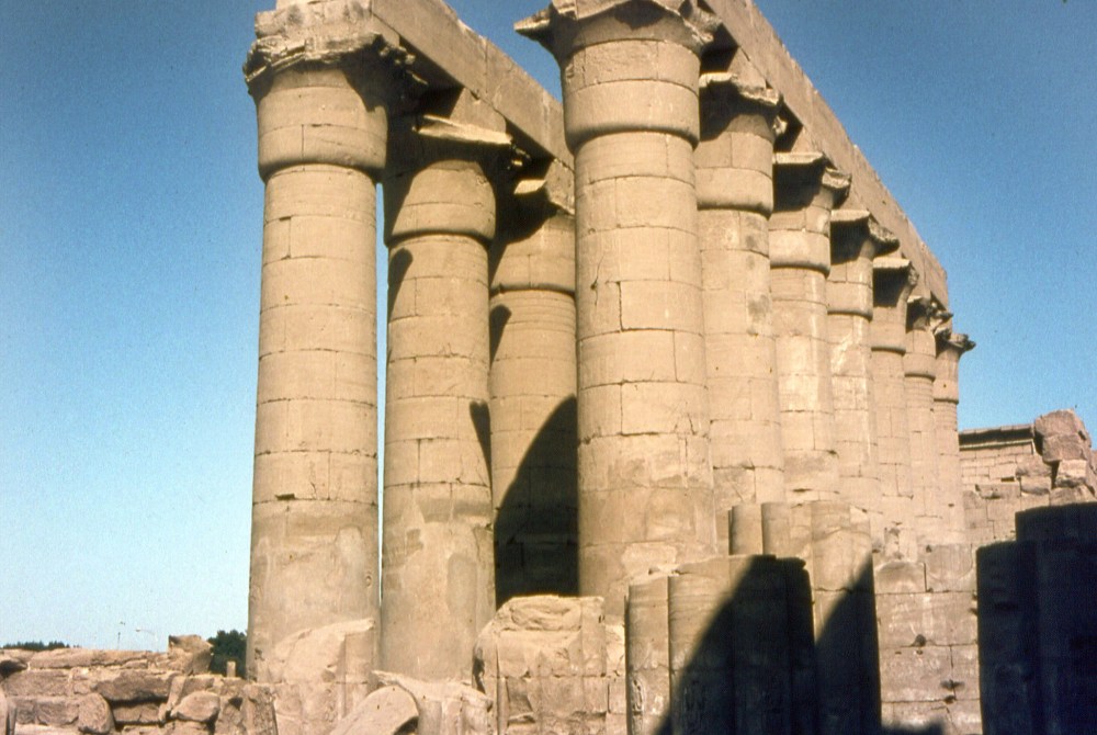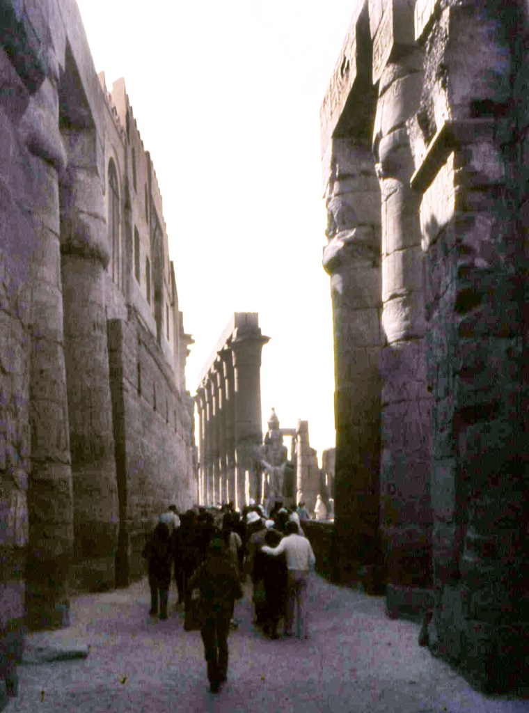 La vastità del complesso di Karnak eguaglia quasi quella dell’intera Città del Vaticano e all’interno, solo per citare una delle strutture, la Sala ipostila, vera foresta di colonne (in tutto sono 134 ordinate in 16 file disposte su una superficie di 5.000 metri quadrati) con quelle centrali alte 26 metri che ti fanno sentire piccolo come una formica (qui in basso immagini da un mio viaggio del 1983).