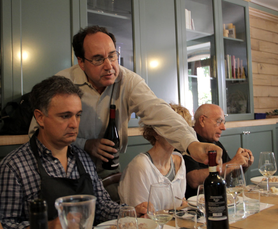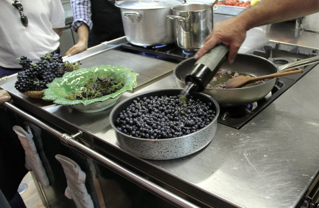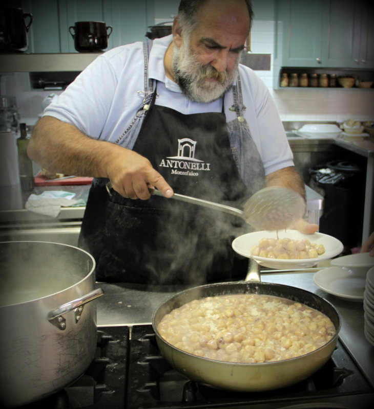 Il mio ricordo del territorio di Montefalco e del contatto con i suoi vini risale a ben oltre tredici anni fa, invitato a una verticale di assaggi per la presentazione di un’annata di questo prezioso Nettare di Bacco che esordiva con l’immissione delle bottiglie nel mercato (foto successive di Angelo Campus – ai fornelli è ritratto il celebre Giorgione/Giorgio Barchiesi con i suoi piatti al… Sagrantino).