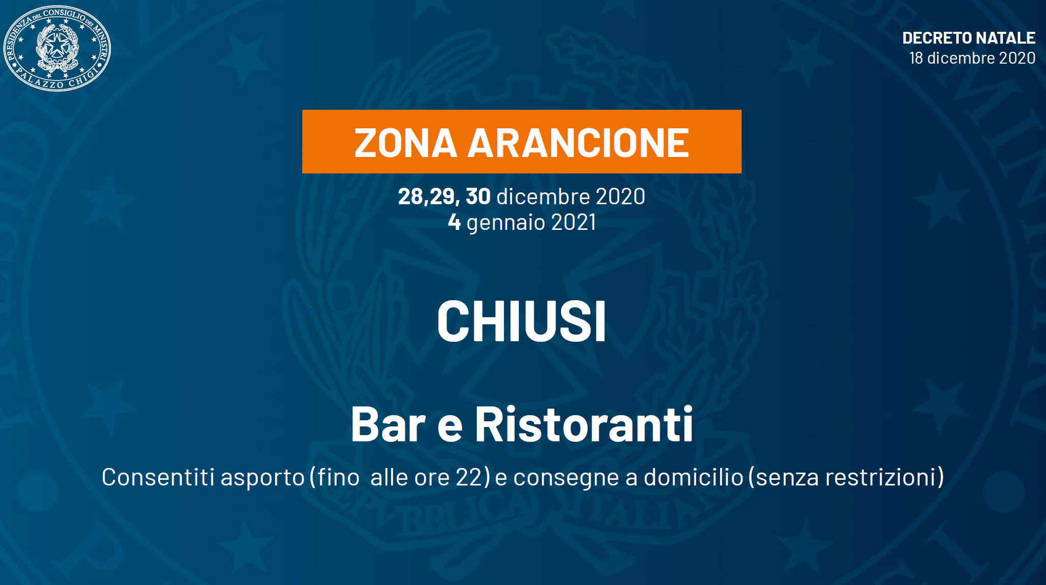 Dal 28 al 30 dicembre e il 4 gennaio, regime da zona arancione per tutti