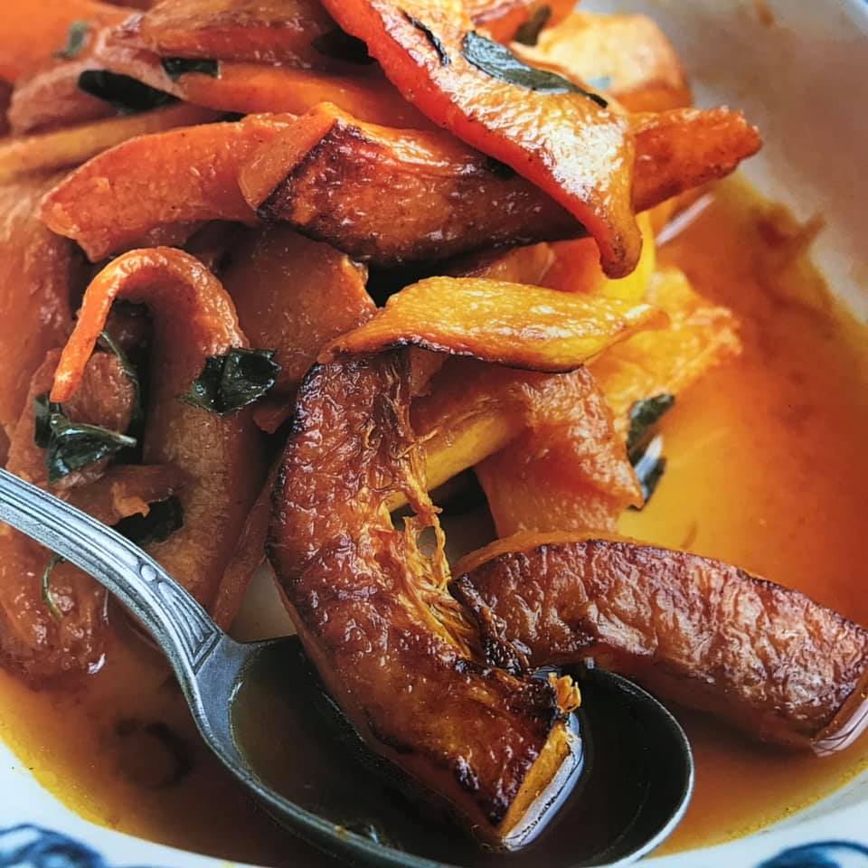 Altra sensazione al palato di grande soddisfazione con sentori appaganti nel loro contrasto la dà la zucca gialla, preparata secondo una ricetta meridional-sicula.