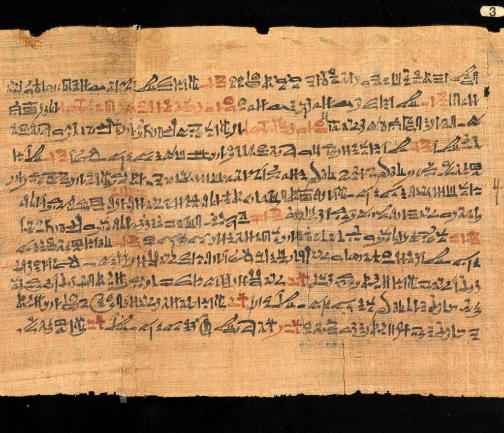 Tornando al papiro in questione, questo contiene tre collezioni di poemi d’amore, divisi rispettivamente in sette, tre e sette parti, tutti in scrittura Ieratica. Quest’ultima è definibile come il corsivo della forma originaria dei geroglifici-caratteri sacri, una versione da utilizzare quotidianamente, se così posso definirla.
