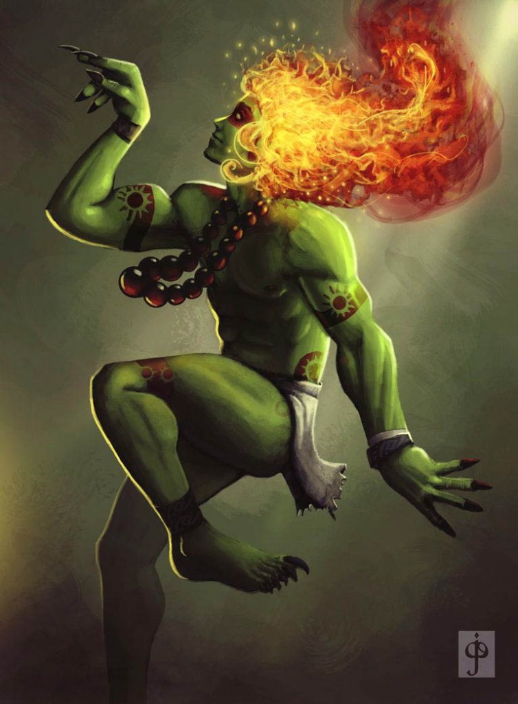 Curupira, capelli di fiamma, piedi girati al contrario, protettore della natura