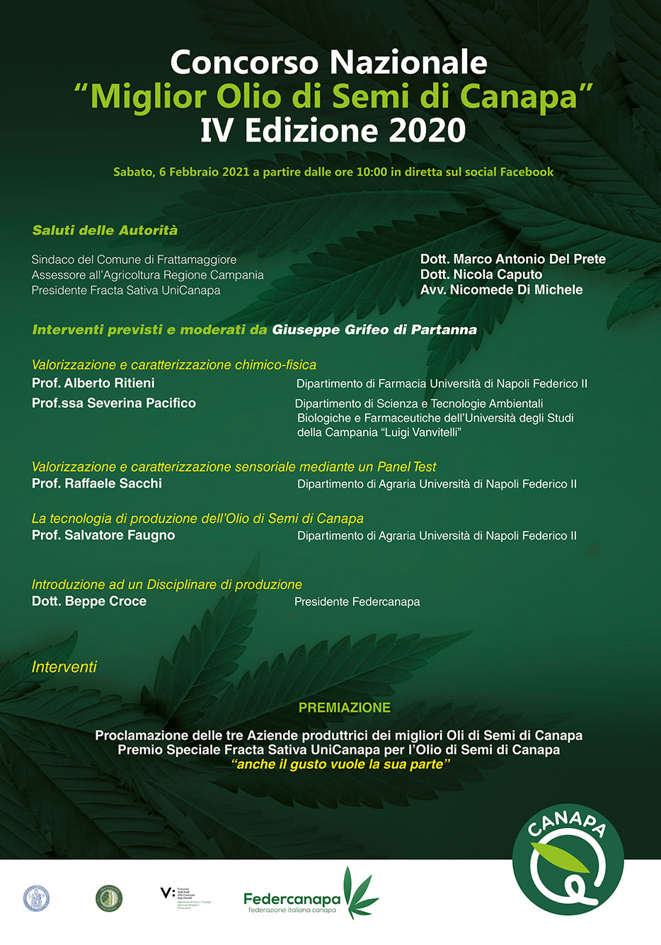 A capo di tutto è stato l’Avvocato Nicomede Di Michele, presidente dell’Associazione Fracta Sativa UniCanapa, organizzatore da sempre di questo Concorso che, nelle precedenti edizioni “in presenza”, si è sempre svolto a Frattamaggiore (in provincia di Napoli) Comune che nel suo statuto riporta la dicitura “Città della Canapa”.