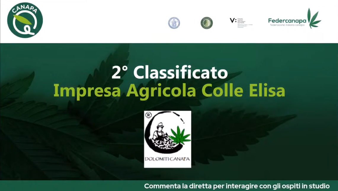 - Azienda veneta, “produciamo olio di Canapa dal 2016 – sottolinea Elisa Colle – facciamo agricoltura di montagna, dedichiamo un ettaro. Siamo in provincia di Belluno, precisamente a Borgo Valbelluna, a otto chilometri da Feltre. Coltiviamo canapa in zona collinare, intorno ai 400 metri d’altezza.Non irrighiamo in campo, portiamo avanti un’essiccazione naturale del seme. Il nostro punto di forza è che sappiamo di trattare il nostro seme in maniera amorevole. Poi un laboratorio di trasformazione ad alta specializzazione a noi vicino, in breve, abbiamo una filiera che si chiude entro i 30 chilometri. Siamo frastornati per questa vittoria perché è un lavoro di famiglia, di questa piccola filiera in cui anche il trebbiatore ha modificato la macchina da frumento per la raccolta, sconvolgendo di conseguenza la sua vita dedicandosi a noi, ma consentendoci di raccogliere un seme veramente pulito: lo dobbiamo ringraziare tanto.