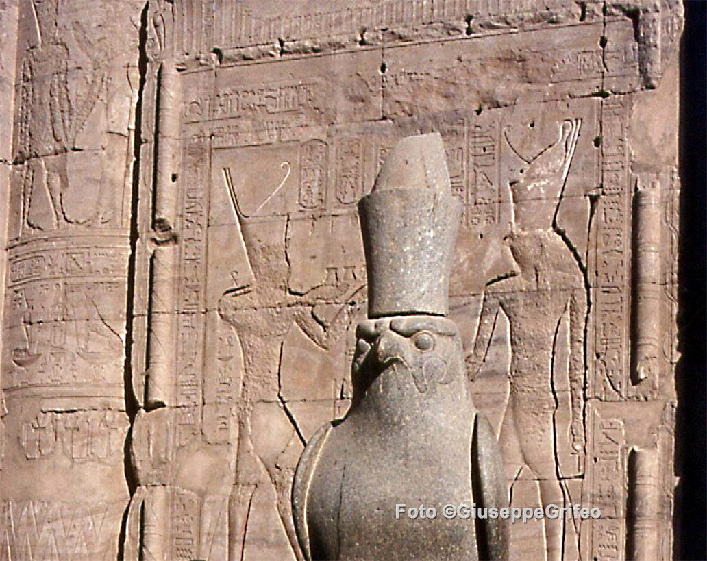 L’armonia, l’ordine, la forza e la ricchezza erano garantiti invece quando nel mondo soprannaturale vinceva Horo-Horus figlio di Osiride e Iside (le due foto cliccabili qui in basso: la prima ©Giuseppe Grifeo; la seconda immagine di Steven C. Price – dal Tempio di Edfu).