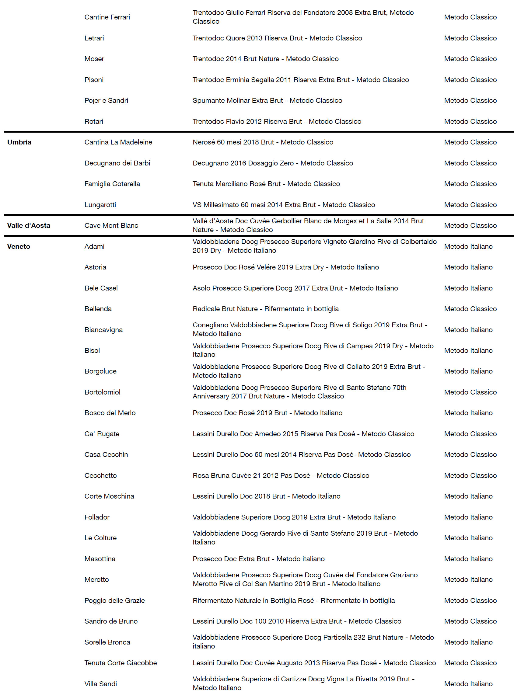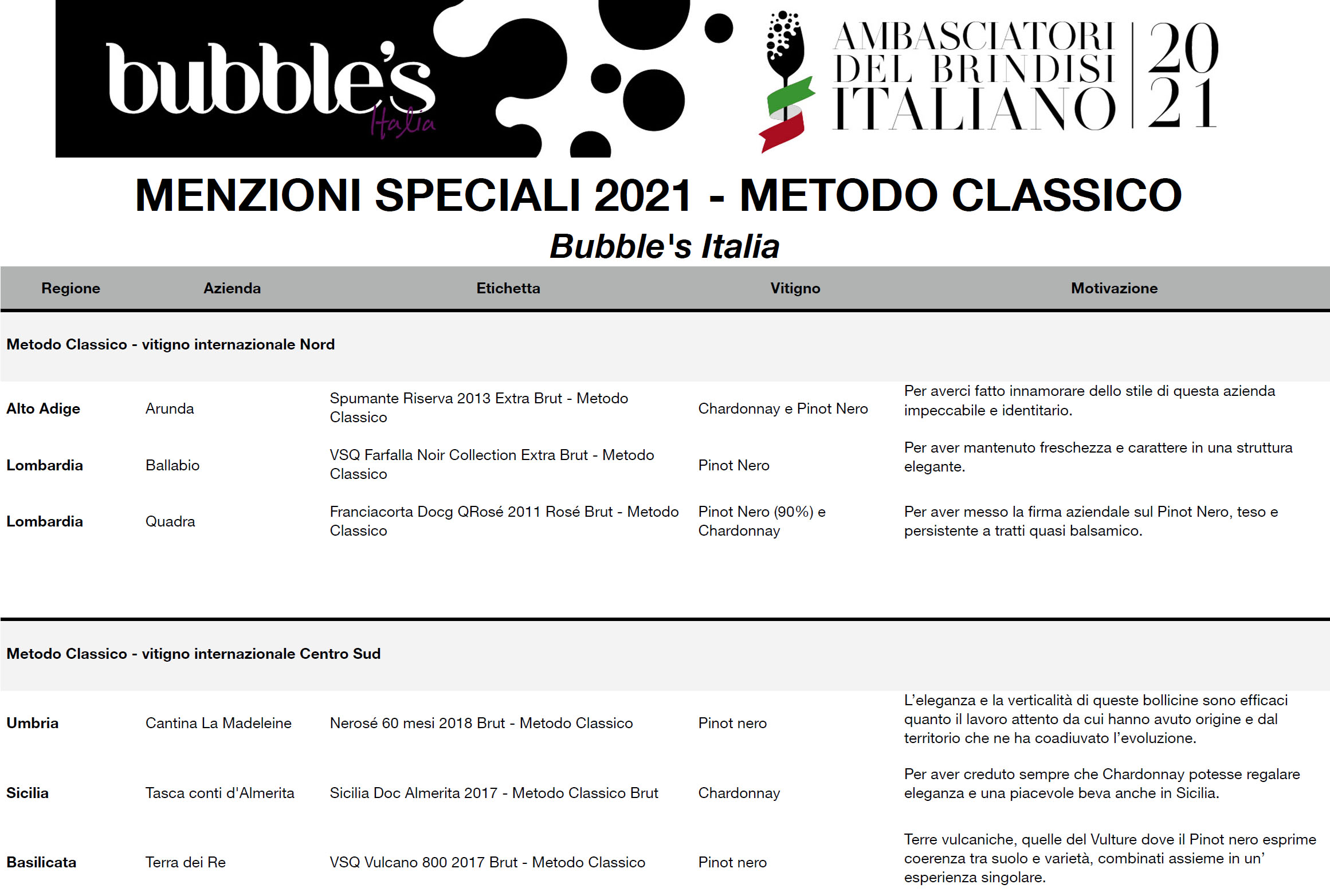 Le sei menzioni speciali 2021 Metodo Classico (immagine cliccabile)