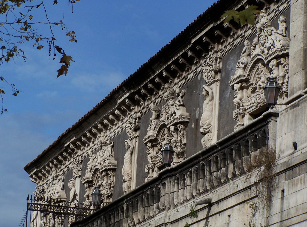 Osservando le statue bianche che ritraggono santi, vescovi e campioni della Cristianità poste intorno all’edificio arcivescovile, si ha una strana impressione: dal recinto sacro della chiesa e dalle cornici architettoniche dello stesso tempio, questi personaggi sembrano guardare il pachiderma, a volte con minaccia o con espressione ammonitrice, oppure con il viso quasi nascosto da una mano, in alcuni casi pare si voltino altrove, quasi con raccapriccio.