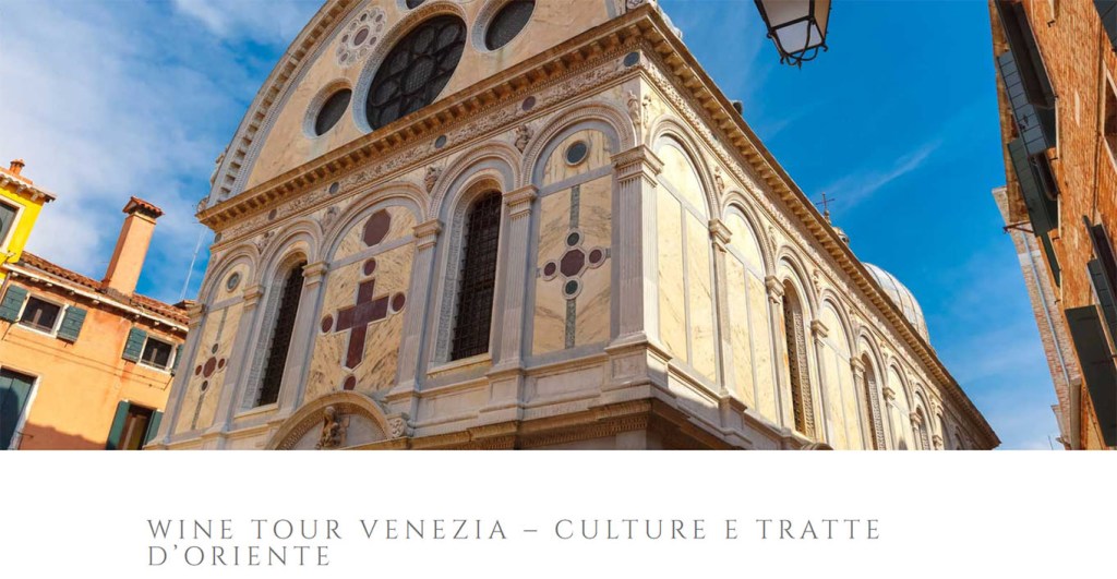 Il secondo, “Wine Tour Venezia – Culture e tratte d’oriente” (link), nasce per far scoprire l’importanza dei traffici con il Medio Oriente e l’influenza delle loro culture nella città veneta, tracce evidenti oggi in particolare nei prodotti entrati nella cultura culinaria locale.
