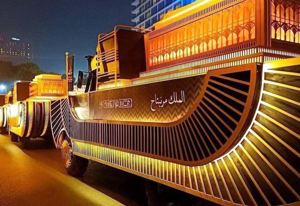 Eccolo qui, in diretta dal Cairo, video in diretta, da osservare anche successivamente assaporando di nuovo l’evento. Pharahos’ Golden Parade, la Grande Parata d’oro dei Faraoni, maestoso trasferimento di 22 mummie – 18 di potenti faraoni e 4 mummie di grandi regine – che saranno trasportate dal noto e classico Museo Egizio del Cairo di piazza Tahrir, fino alla nuova struttura del NMEC – Museo Nazionale della Civiltà Egizia (link).