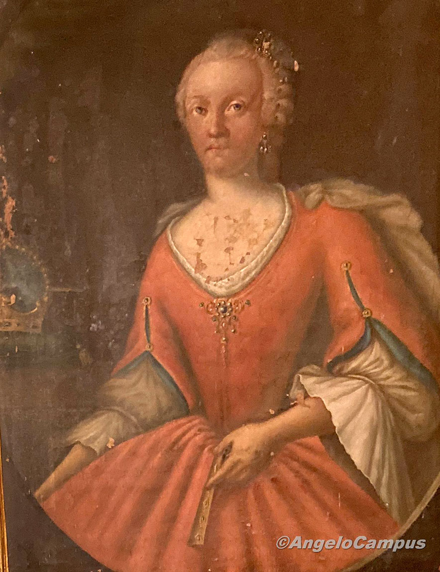 Tra i tanti personaggi che guardano (tra il perplesso e l’incuriosito-semi indifferente) i visitatori dai loro ritratti appesi alle pareti, Calcedonio Nobili Vitelleschi (1792-1895) che, con il grado di Alfiere, militò nell’esercito pontificio di Papa Pio VII, oppure due ritratti rispettivamente del Re Borbone Ferdinando IV di Napoli e III di Sicilia e della prima consorte, la Regina Maria Carolina d’Austria.