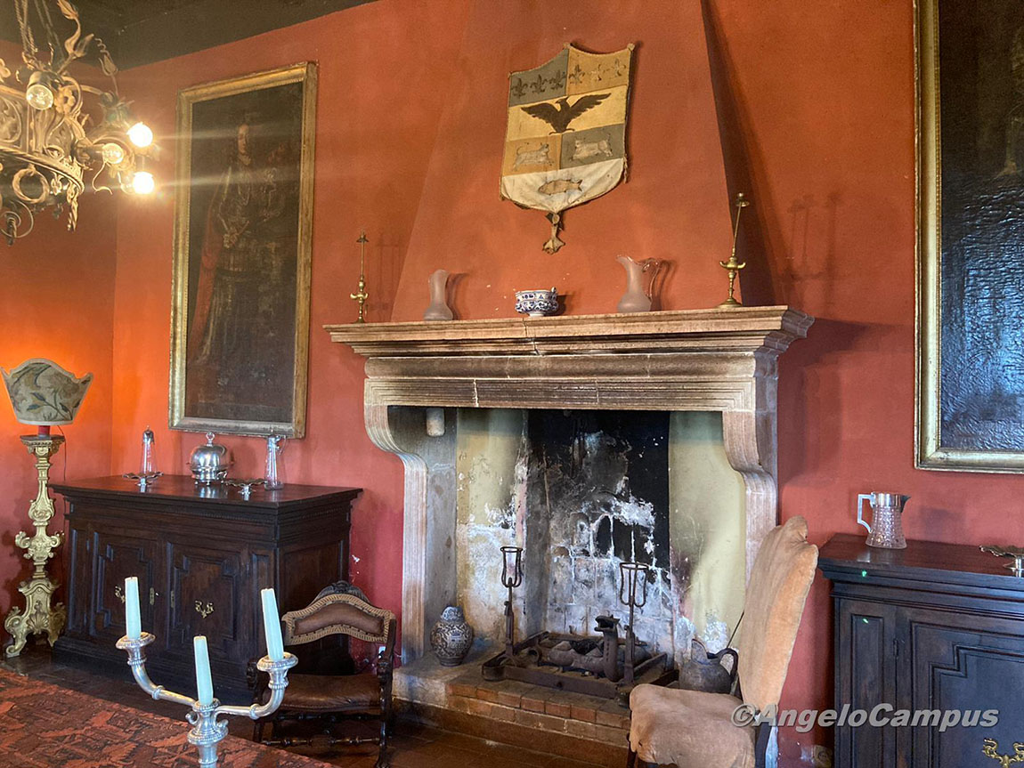 Ritratti degli avi, mobili d’epoca, antichi abiti e foto, finestre che si aprono su panorami unici, affreschi che narrano storie di santi e della famiglia (compresa l’ultima scomunica), le antiche cucine, i locali dell’armeria che ripercorre secoli con spadoni, armature, pistole a pietra focaia, archibugi fino ad armi di Prima e Seconda Guerra Mondiale.