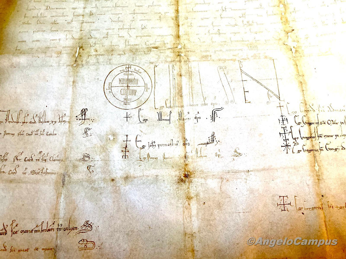 Tra quei fogli viaggia la storia italiana, locale e di rapporti internazionali. Spuntano fuori firme e sigilli di papi, re, imperatori.