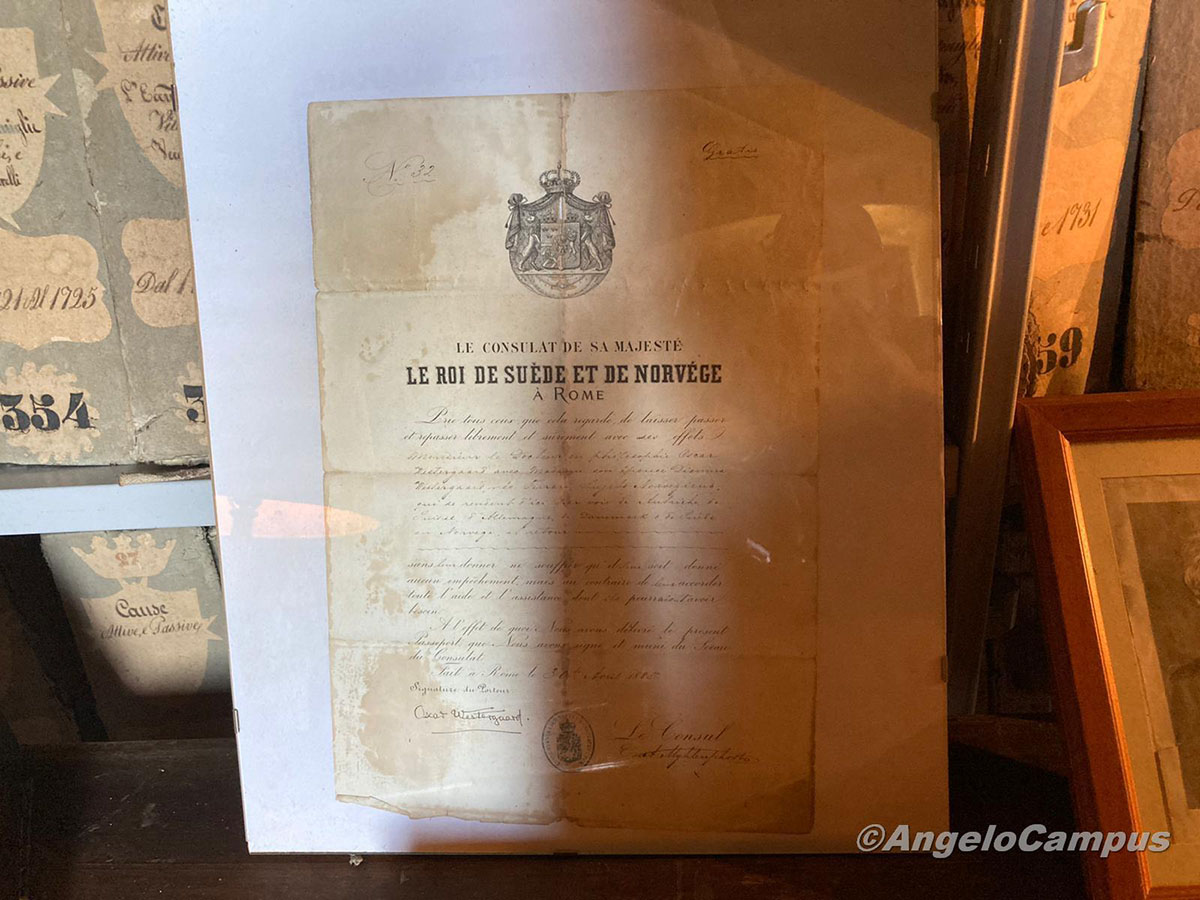 Alcuni esempi proprio in Papa Celestino III, poi un documento del 1452 di Federico III, Imperatore del Sacro Romano Impero. E ancora, Carlo VI d’Asburgo, Imperatore del Sacro Romano Impero con un sigillo dove spicca l’Aquila bicipite legato al carteggio imperiale, ma protetto in una sua custodia a parte. Cito per ultimi, tra i tanti altri, anche un altro scritto del 1620 con firma e sigillo di Luigi XIII Re di Francia o documenti come la Lettera di Via del 30 aprile 1883 rilasciata dal Consolato del Re di Svezia e Norvegia.