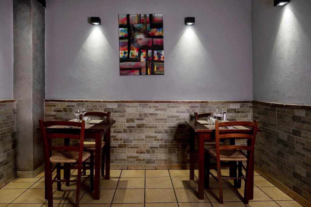 Arredamento curato, semplice, caldo e accogliente come lo è Adriana Pititto, vera forza della natura, pronta a comprendere con grande intuito le esigenze degli avventori. Servizio estremamente attento, ma per nulla invasivo. Il tutto avviene di fronte alla Basilica di San Clemente, a brevissima distanza dal Colosseo che è visibile lungo via di San Giovanni in Laterano e dai tavoli esterni del ristorante.