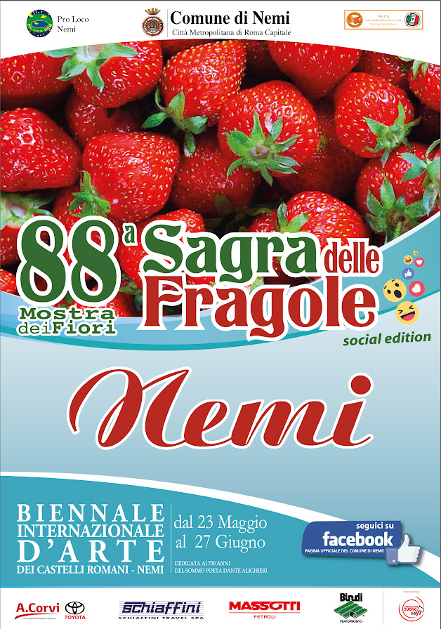 La promozione della manifestazione “social” fa perno su una serie di video caricati sulla pagina Facebook istituzionale per informare un pubblico più vasto possibile sulle peculiarità storiche, archeologiche, culturali e della tradizione di Nemi. Inoltre, fino al 29 Giugno è stato ideato un programma ricco di eventi e visite gratuite nelle aree più caratteristiche ed iconiche del paese delle fragole.