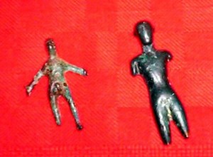 - 2 statuette in bronzo raffiguranti figure maschili nude, risalenti al IV-III secolo a.C.