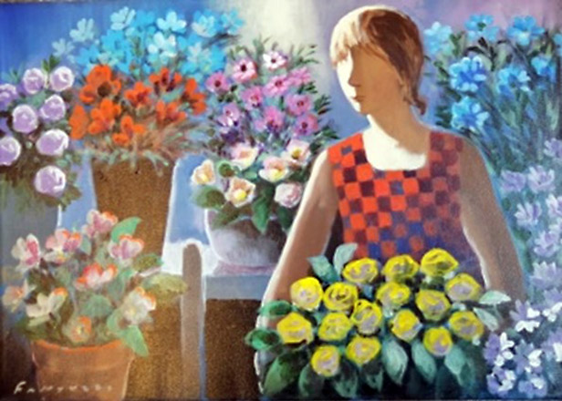 - 1 dipinto dal titolo “Donna con mazzo di fiori davanti al bar”;