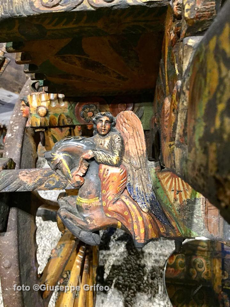 Quindi, Maestri d’ascia e carradori, fra i quali intagliatori, maestri fabbri, decoratori, pittori, costruttori di finimenti, usciulari (ovvero costruttori di boccole) non ultimi cuntastorie e pupari, artigiani e artisti connessi con l’essenza del carretto siciliano.