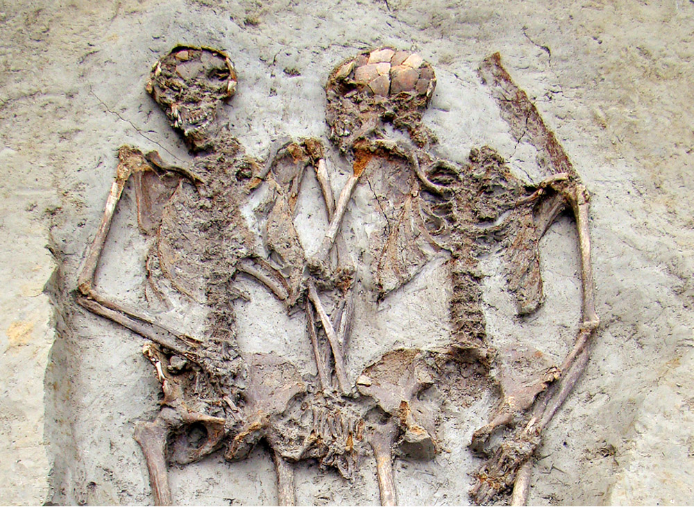 La scoperta della sepoltura con i due “amanti” risale al 1972. I resti sono lì, come fissati in una carezza, in un abbraccio e in un bacio che durano da circa 2.800 anni.