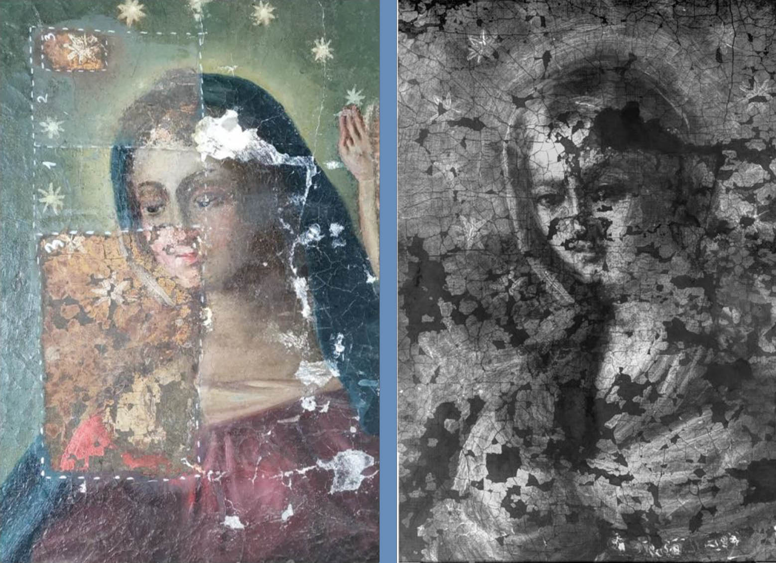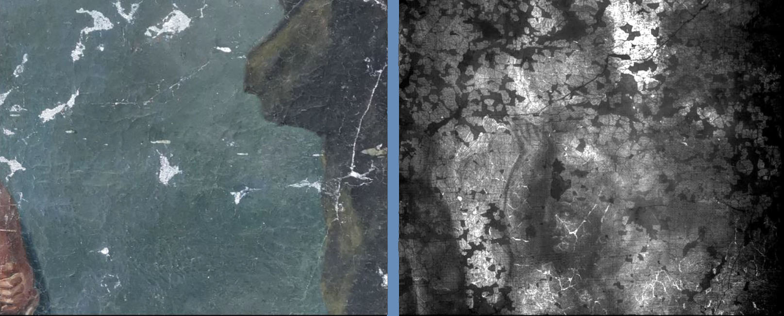 La diagnostica ai raggi X ha permesso di osservare gli strati pittorici sottostanti a quelli in superficie, mentre le porzioni ripulite hanno fatto emergere i bei colori originari.