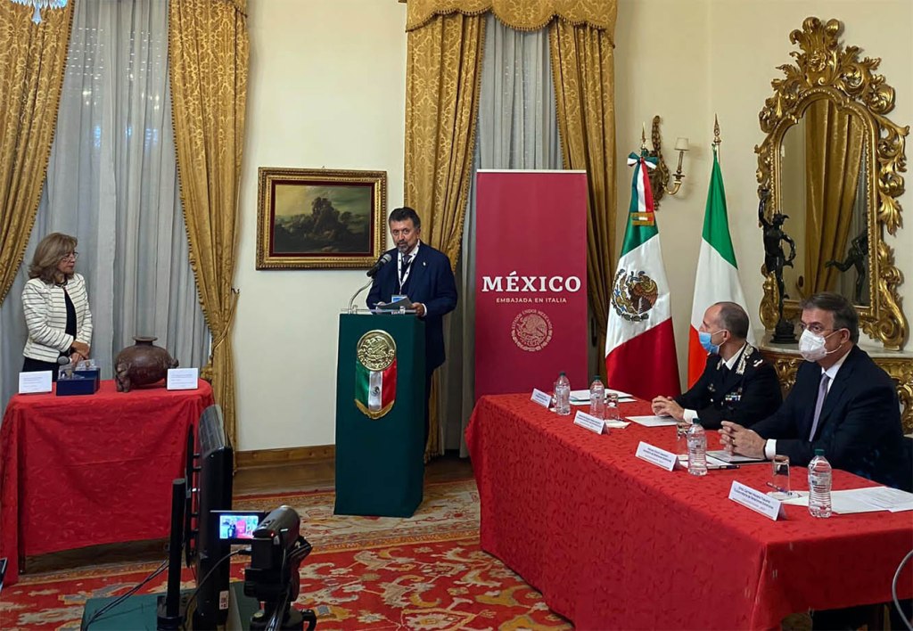 È stata una vera e propria cerimonia solenne quella della restituzione, con il Comandante dei Carabinieri per la Tutela del Patrimonio Culturale (Tpc), Roberto Riccardi, che ha consegnato le tre opere d’arte all’ambasciatore messicano affiancato, come testimone dell’evento, da Marcelo Ebrard, ministro degli Esteri messicano.