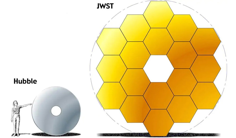 Una caratteristica comune tra il vecchio telescopio orbitale Hubble (specchio da 2,4 metri) e il JWST, è che entrambi si trovano fuori dall’atmosfera terrestre, quindi liberi da qualsiasi interferenza visiva per colpa degli strati d’aria e del pulviscolo atmosferico del nostro Pianeta.