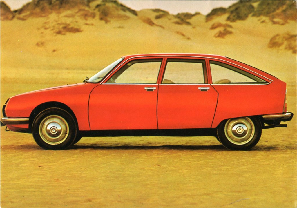 In questa panoramica, ecco che un giorno mio padre tornò con un’auto che “sospirava”, si alzava e si accucciava a riposo, quando si spegneva il motore, o si tirava su agendo su una levetta per passare oltre su strade di campagna o allagate, un’automobile che potevi caricarla come volevi di bagagli, agganciarle dietro una roulotte… e non si abbassava dietro neppure un po’, mentre le altre, schiacciate dietro, imbardavano il muso che quasi puntava verso un alto orizzonte. L’auto in questione, portata a casa da papà, era una una Citroën GS 1220 Club (modello proclamato internazionalmente Auto dell’Anno 1971).
