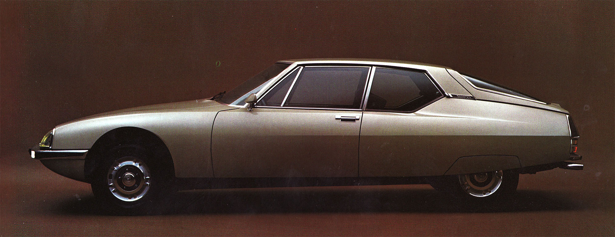 Enorme coupé con motore Maserati (Casa che all’epoca apparteneva alla Citroën) prodotta dal 1970 al 1975: una linea favolosa, incantevole, futuristica, come da tradizione della Casa Automobilistica francese. Ampio frontale con tutta la linea dei fari e del marchio centrale, racchiusa da destra a sinistra in un raccordo trasparente continuo. Anche gli interni sembravano ispirati a quelli delle auto futuristiche della serie di fantascienza “UFO” andata in onda negli anni 60.