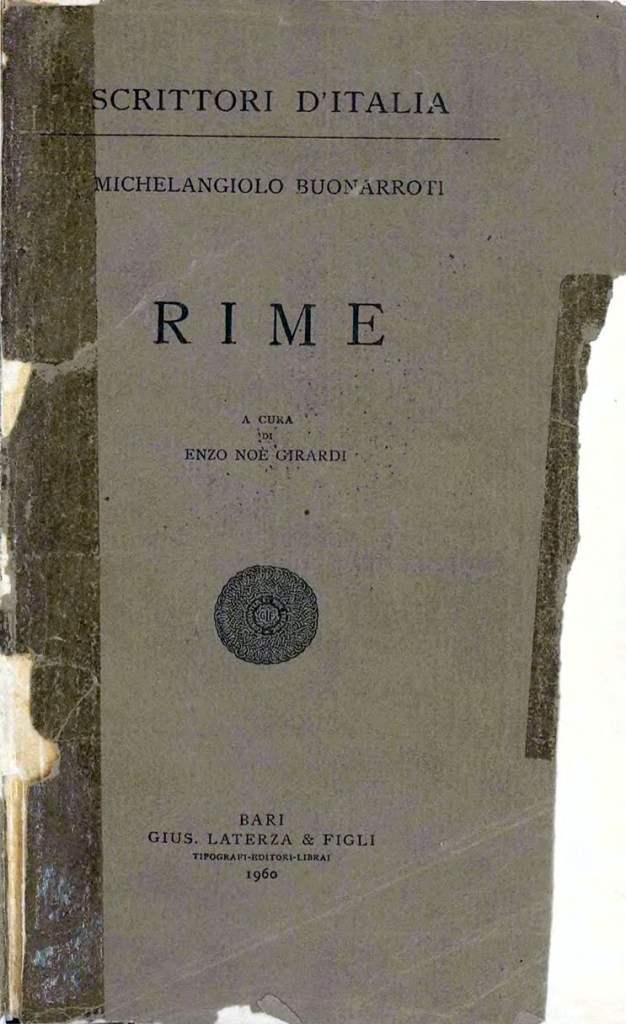 Le rime di Michelangelo furono raccolte per la prima volta da suo nipote Michelangelo Buonarroti il Giovane nel 1623.