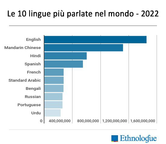Considerando solo i madrelingua, è il Cinese Mandarino a essere l’idioma più parlato al mondo. Le cose cambiano se per l’intero Globo si considerano coloro che sono di seconda, terza e di lingua prevalente: in questo caso è l’Inglese a diventare la lingua più utilizzata nel mondo. Come rimarcato da Etnologue, dovrebbe essere un effetto della prima influenza coloniale dell’Impero Britannico e della successiva diffusione della cultura nordamericana.