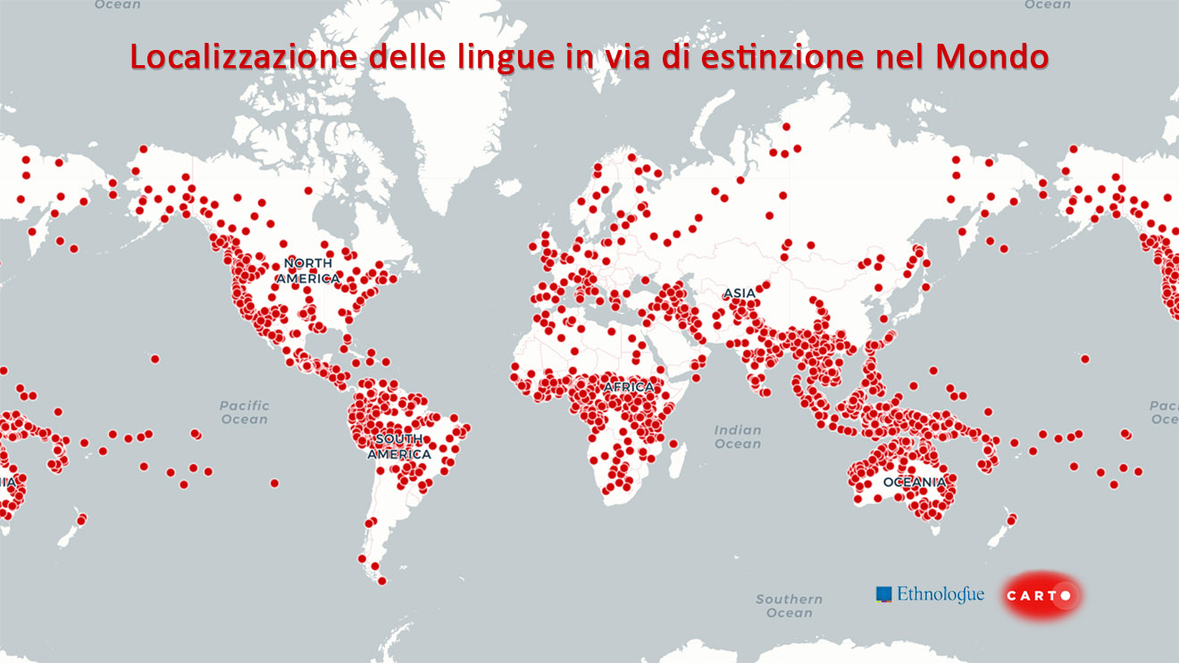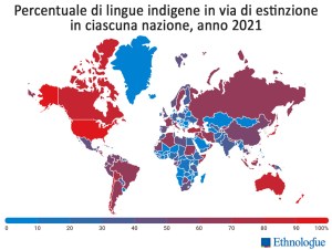 Circa il 42,58% delle lingue è ora in pericolo (endagered – in via di estinzione), alcune di queste spesso vengono “parlate” da meno di mille persone. Contemporaneamente, solo 23 lingue rappresentano più della metà della popolazione mondiale.