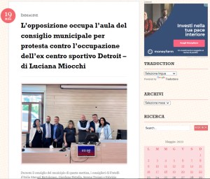 Adesso gustatevi l’intero testo a questo link: L’opposizione occupa l’aula del consiglio municipale per protesta contro l’occupazione dell’ex centro sportivo Detroit