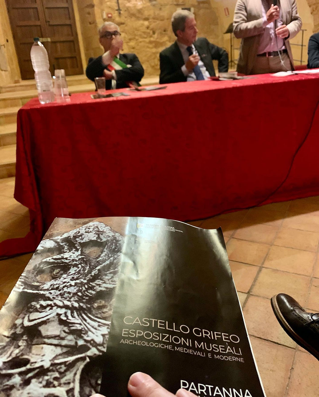 Nel 2007 la rappresentanza di Famiglia era bella folta. In questo 2022 ero solo, anche per l’organizzazione improvvisa dell’appuntamento. La mia presenza era anche un tributo rivolto a mio zio Enrico Grifeo, fratello maggiore di mio padre, zia Lina sua moglie, mio zio Sergio Grifeo, ex segretario generale della Regione Sicilia e altro fratello di papà, mia cugina Teodora, mio cugino Giuseppe, mio omonimo nonché musicista di Jazz sperimentale che tenne anche un concerto nella Corte principale del Castello, mia cugina Sabrina, uno dei massimi esponenti dell’universo Yoga in Italia. Tutti avevano avuto modo di visitare questo Castello che ha ospitato per circa 900 anni chi ci ha preceduto. Tutti con l’intenzione di valorizzare questo patrimonio per esaltare il territorio, farlo conoscere alla gente del XXI secolo insieme alle sue usanze, particolarità e ricchezze culturali.