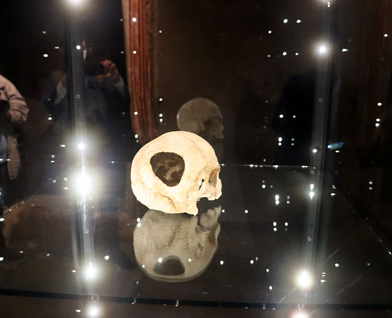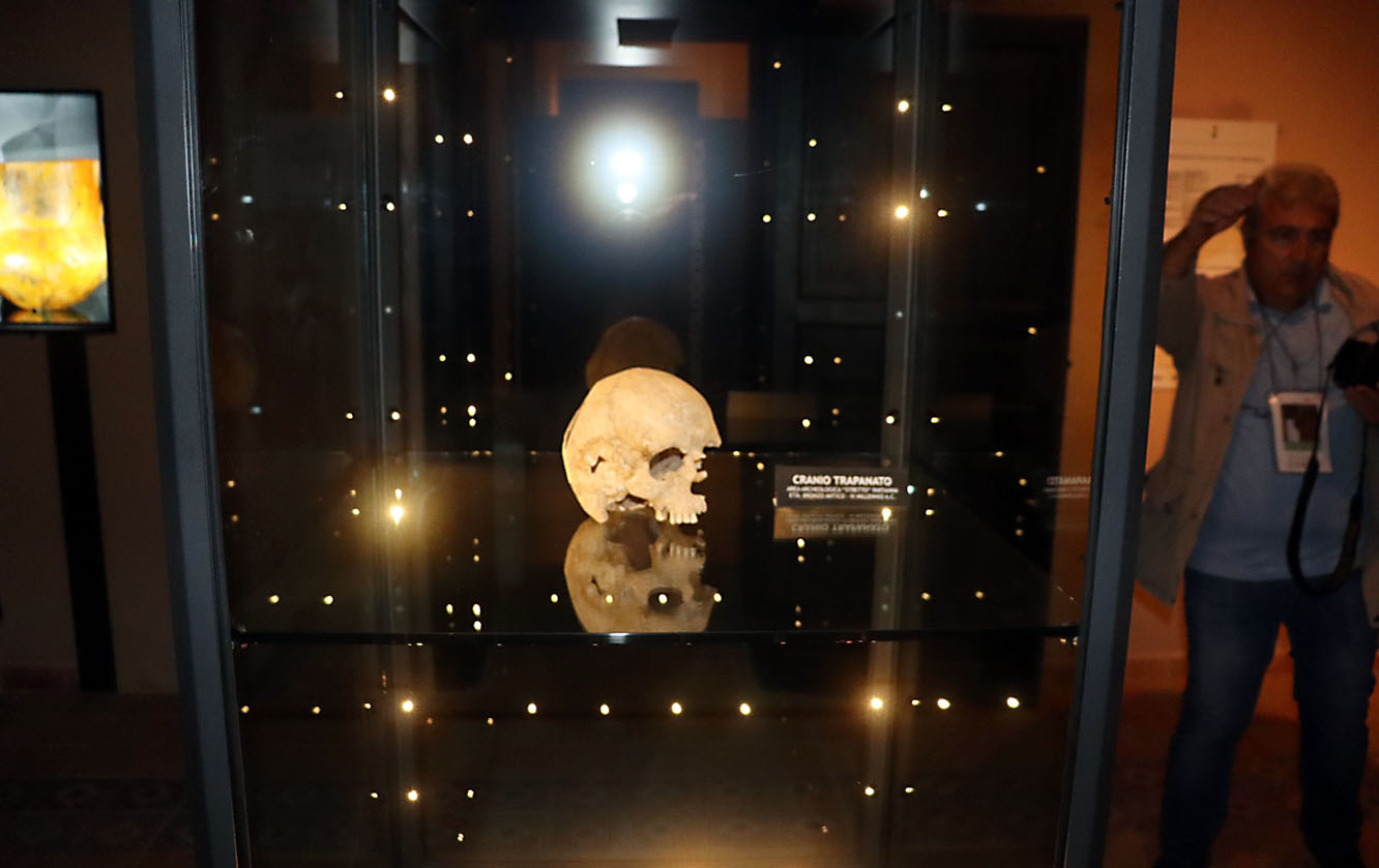 Chiudo qui con le parole. Che siano le immagini da sole a descrivere. Per particolari sull’esposizione raccontata basta andare al mio precedente articolo (link). Aggiungo solo che la raccolta custodita nelle sale del maniero partannese comprende oggetti e testimonianze del Paleolitico e del Neolitico coprendo un intervallo di tempo che inizia da 180.000 anni prima di Cristo. Reperti fossili del Pleistocene, animali da tempo scomparsi in Sicilia come cervi, elefanti, ippopotami che testimoniano come le terre emerse di allora consentivano un passaggio con le terre d’Africa. Poi la presenza dell’uomo tra i 40.000 e i 10.000 anni fa, i rifugi e le sepolture scavate nella roccia, gli utensili in pietra, selce e osso, l’Età del Bronzo, il “Cranio trapanato” risalente a circa 3.000 anni fa, evidenza di pratiche magico-terapeutiche di interventi anche invasivi alla testa. Infine, dipinti dal 1500 in poi.