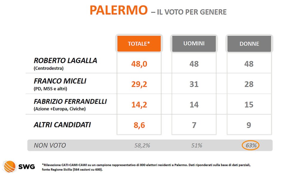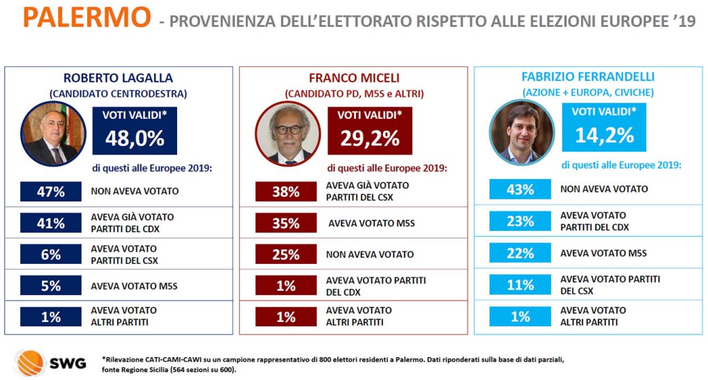 Palermo, andamento del voto alle Comunali: chi ha votato chi? Rilevazione SWG