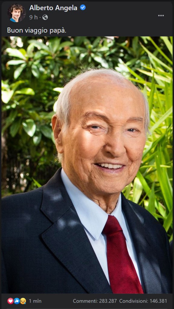 “Carissimi tutti, penso di aver fatto la mia parte. Cercate di fare anche voi la vostra per questo nostro difficile Paese. Un grande abbraccio. Piero Angela”.