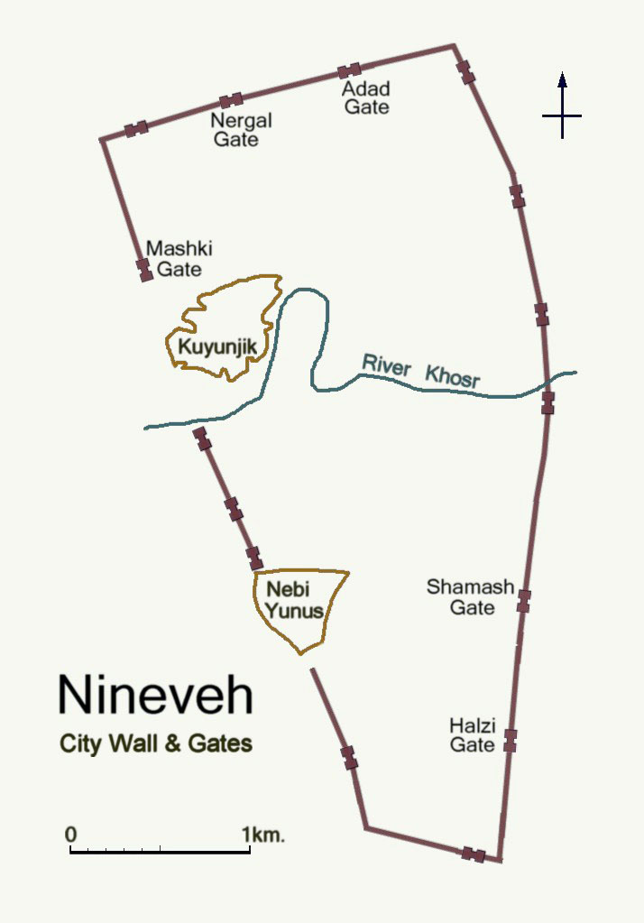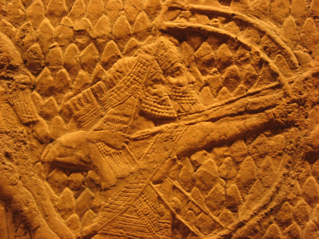 L’Assiria poi attraversò due secoli incerti per debolezza amministrativa, per incursioni di altre popolazioni, ma con il Re Adad-Nirari II (911-891 a.C.) l’Impero fu riportato all’ordine e consolidato senza espandersi, inglobando solo Babilonia. Col Re Assurnasirpal II (883-859 a.C.) prese vita l’espansione vera e propria, spesso portata avanti con metodi spietati (oltre ai massacri, soprattutto dei ribelli, torture e punizioni oltre che applicate venivano ben “pubblicizzate”): Calach-Kalhu–Nimrud divenne Capitale. Ma non fu solo lei la capitale: c’era anche l’antica e appena più settentrionale Ninive, in accadico 𒌷𒉌𒉡𒀀-Ninua, sulla riva orientale del Tigri proprio di fronte all’attuale Mossul.