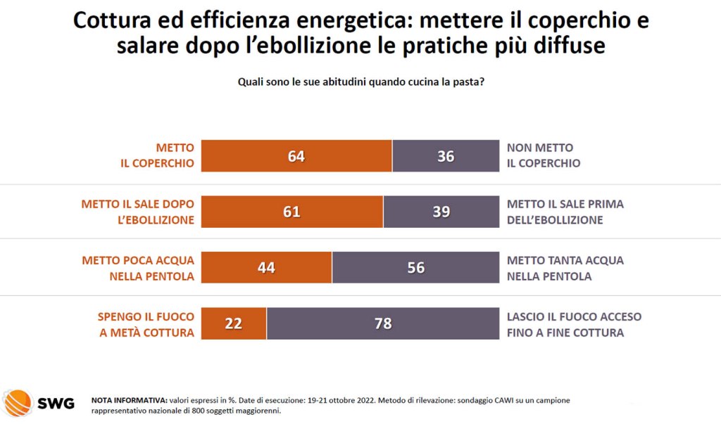 Ebbene, 22 su cento intervistati hanno risposto che spengono il fornello a metà tempo della cottura prevista per tipologia di pasta.