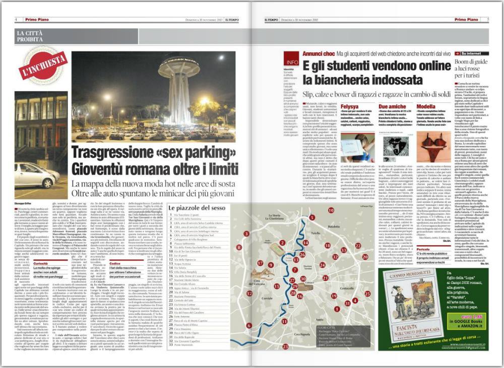 Fu il risultato, rivisto, di una precedente inchiesta tra universitari e liceali, poi riproposto in due successive edizioni aggiornate con altre novità. Specifico che ogni vendita di indumenti sporchi oscillava tra i 20 e i 60 euro (comprensivi dei vari “optional” previsti), commercio che consentiva guadagni dai 200 agli oltre 800 euro mensili. Un bel sostegno economico, a prescindere dal metodo scelto, per vivere studiando, soprattutto se si era studenti fuorisede o se si volevano soddisfare desideri d’acquisto come l’ultimo modello di smartphone, serate in locali ecc. Preoccupava la vendita fatta da minorenni. Il mio articolo e il pezzo di spalla che qui ripropongo sono solo siglati perché facevano parte di una doppia pagina e avevo già firmato per esteso il pezzo d’apertura della pagina pari a fronte di questa.