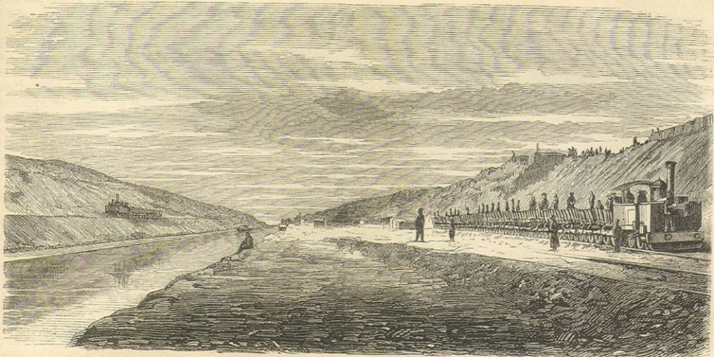 I lavori per realizzare il canale andarono avanti dal 25 aprile 1859 al 1869 (inaugurazione: 17 novembre) a opera della francese Compagnie universelle du canal maritime de Suez, costituita il 15 dicembre 1858 e diretta da Ferdinand de Lesseps.