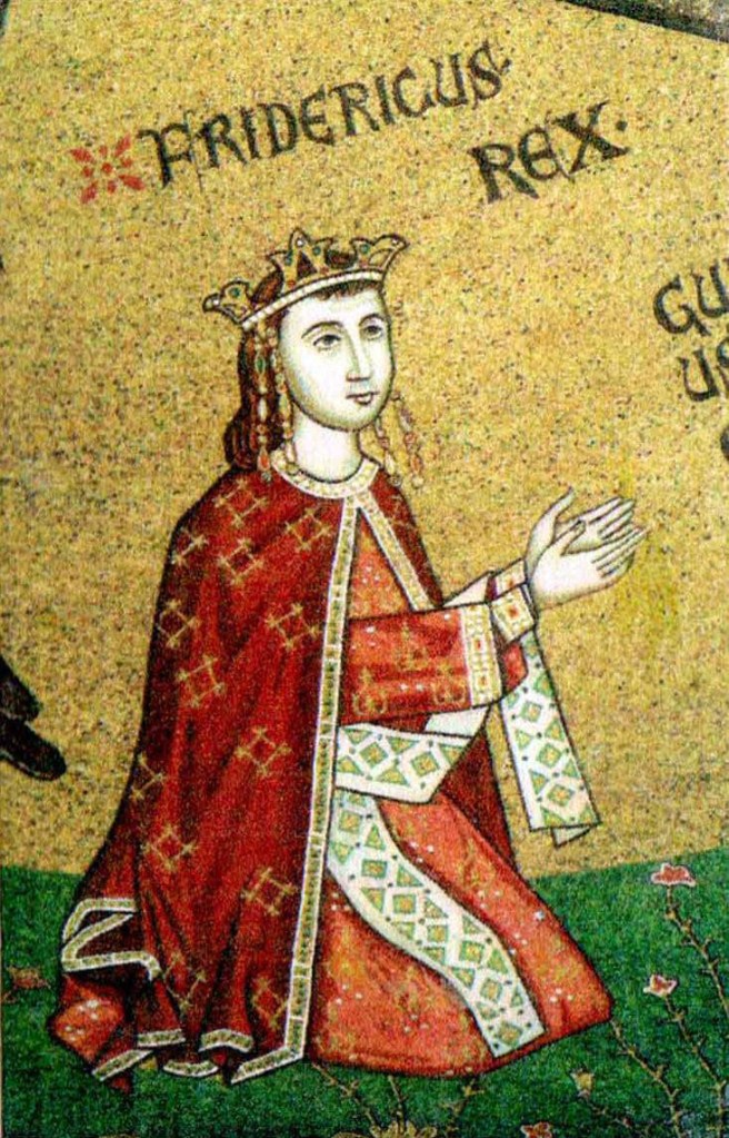 Il 25 marzo 1296, Festa dell’Annunciazione, nella Cattedrale di Palermo, il ventiduenne Federico viene incoronato rex Sicilie per diritto avito: “domini quondam imperatoris Frederici proavi et domini regis Manfridi avi nostri”, formula usata da Pietro III e da Giacomo II, sottolineatura della continuità dinastica che Federico stesso riconosceva nella volontà divina e in quella dei siciliani.