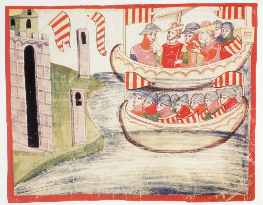 Re Pietro d’Aragona, anche perché chiamato dai siciliani ribellatisi agli Angiò con il Vespro, assume la corona siciliana e accompagna la Regina Costanza in Sicilia portando i fratelli Federico, Giacomo e la principessa Violante. A metà aprile del 1283 sbarcano a Trapani e il popolo li accoglie in festa gridando “Petru! Petru!”.