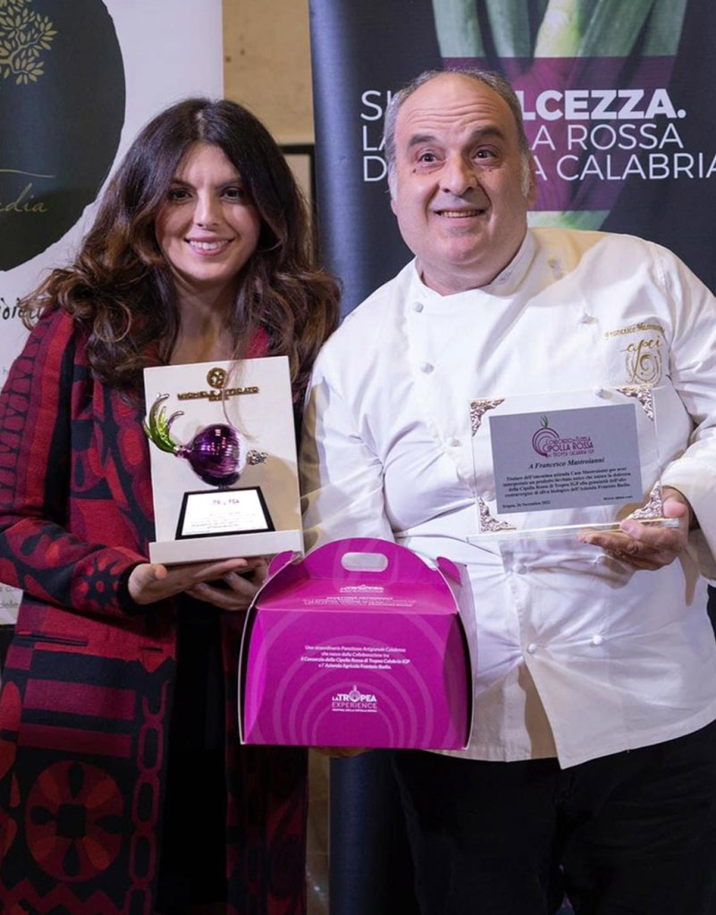 Ebbene sì, l’ingegno della gente di Calabria ha visto convergere diverse realtà per giungere a questa proposta dolciaria: il Consorzio di Tutela della Cipolla Rossa di Tropea Calabria IGP, il Maestro pasticcere Francesco Mastroianni e l’olio extravergine biologico dell’Azienda Agricola Frantoio Badia a Limbadi in provincia di Vibo Valentia.